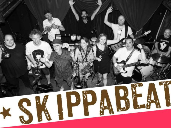 De Bredase ska band SKIPPABEAT is inmiddels een begrip in Breda en ver daarbuiten. SKIPPABEAT zorgt met haar top muzikanten voor een allround ska show! Met hun “rocksteadyreggaepunkwhateverska” vliegt het alle kanten uit. Stil staan is er bij deze band niet bij. Aan de strakke blazers-sectie, de heerlijk pompende bas, de chops en zoveel meer van de gitaar, de strakke drums, catcher zanglijnen en de percussie hoor je duidelijk dat de muziek door hun aderen stroomt.